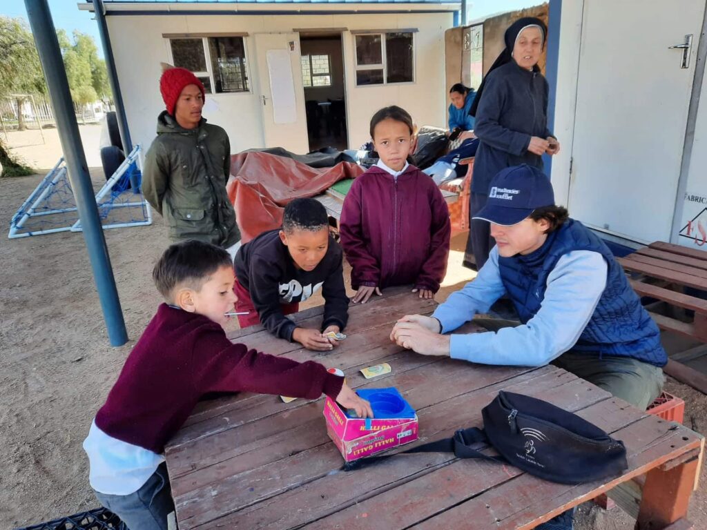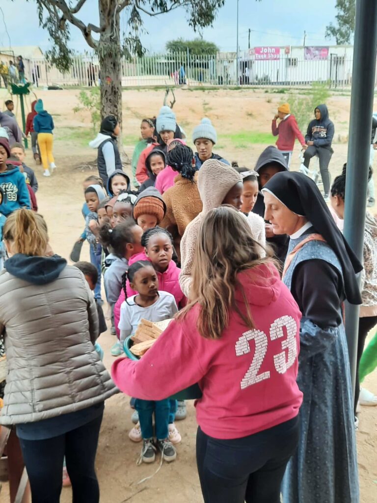Deux de nos volontaires ont été interviewés à la radio locale d’Okiep, la première paroisse de Mgr Simon, notre premier père Oblat, à avoir fondé le diocèse catholique en arrivant sur Pella. Armand et Taïs ont expliqué en anglais leur motivation à venir faire cette expérience de volontariat ici à Matjieskloof. Pendant ce temps-là, nous avons préparé les sandwichs des enfants. Pas mal de personnes ont écouté cette émission en direct à la radio. Cela fait ainsi de la publicité pour le playground et permet de parler de ces enfants qui ont besoin d’être vraiment aidés.