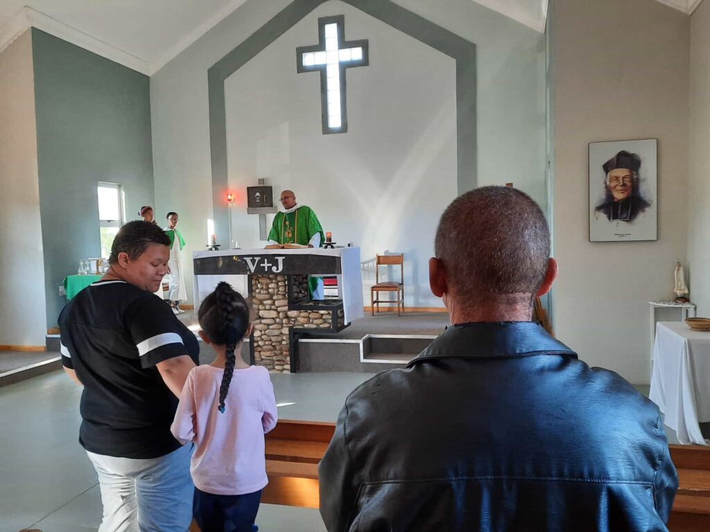 Nous avons commencé notre journée par la Sainte Messe à la paroisse de Matjieskloof. Il s’agissait d’une messe d’enterrement. Nous avons découvert comment culturellement les sud-africains vivaient cette étape.